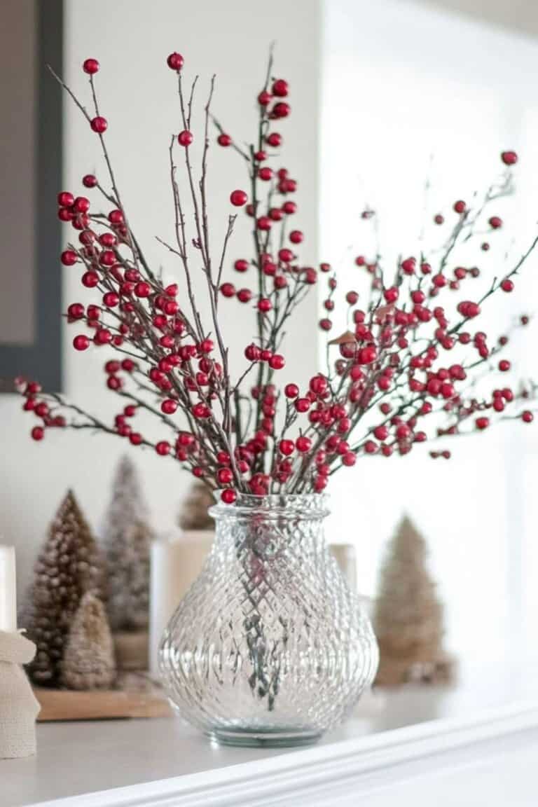 Place one or two clear or white vases on the mantel and fill them with long winter berry stems.