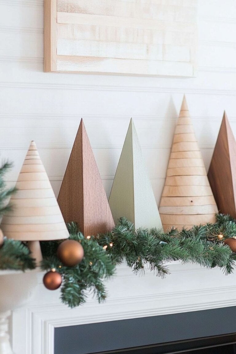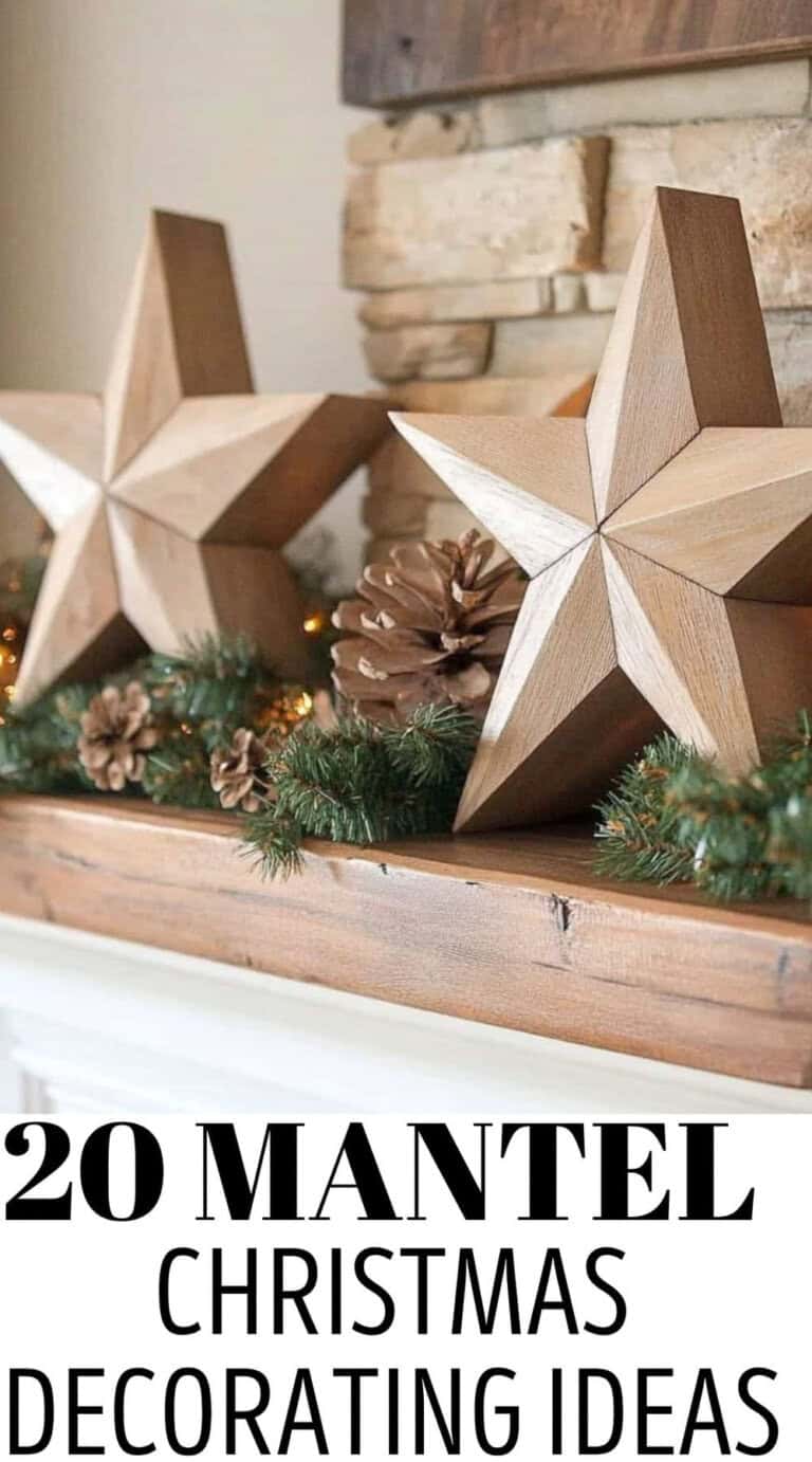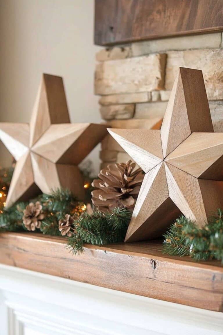Stand up or lean some wooden stars against the wall along the mantel for a natural and rustic look.