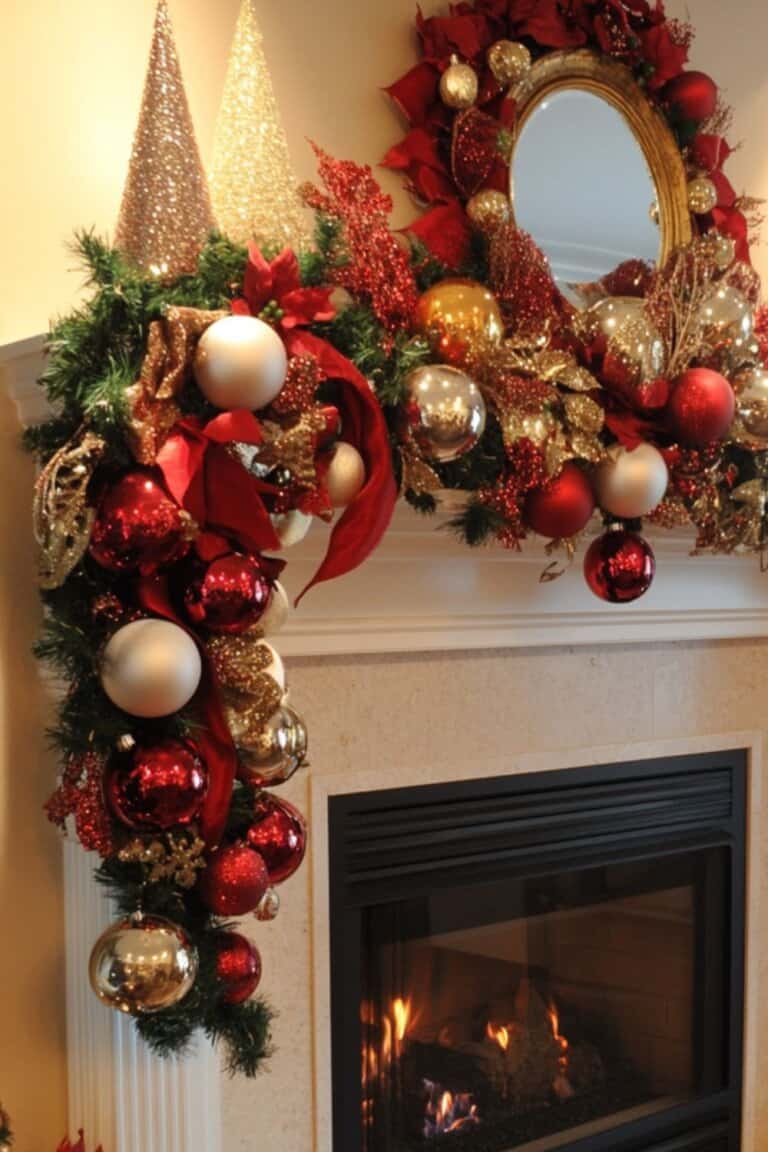 Drape a garland made entirely of Christmas bulbs along the mantel for a bold, playful look.