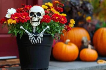 If you’ve got an old wheelbarrow, pile it high with pumpkins, gourds, and maybe a plaid blanket tucked underneath.