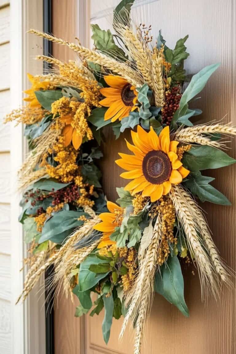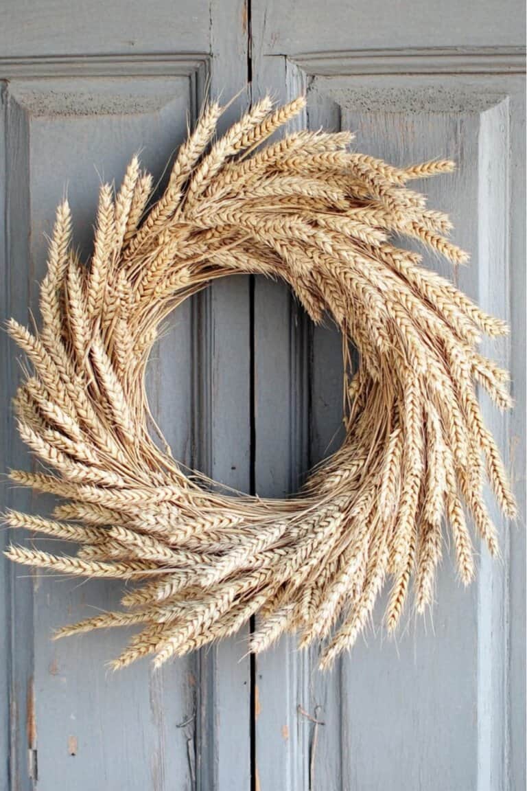 Golden wheat bundled tightly around a straw or foam base gives off that quiet, harvest-season feel.